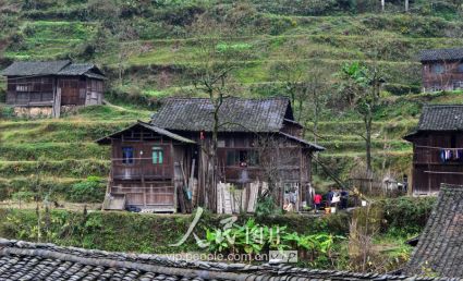 新娘之所以“不落夫家”,一是仍要报答父母的养育之恩;二是舍不得童年伙伴,还要回到寨子里与伙伴们伴做伴,最长可达三年之久;直到同伴都有了对象才分散,新娘方到新郎家长住下去,这样的奇趣婚俗也在黔东南的一些侗族地区一直得以保存下来。图为11月17日凌晨,新郎家派来的娶亲队伍点着火把前来娶亲。