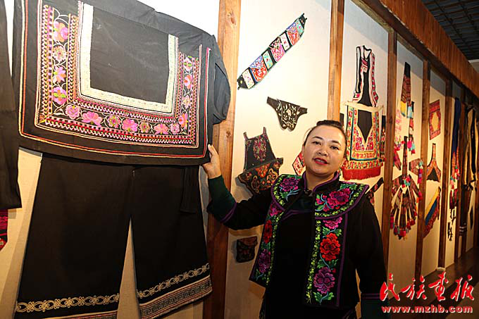 墙上的刺绣物品均是李长征从各地收集来的,最久的饰物距今有200多年历史(民族画报曾颖 摄影)