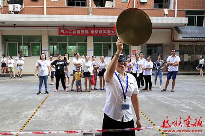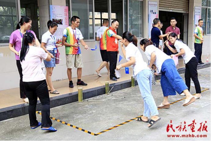 趣味运动会结合民族地区开展的传统体育项目,以及趣味竞技游戏等,展示了少数民族传统体育特色,如盲敲铜锣和高跷便是利用了民族地区的一些传统活动改编而来的,另外还有团队协作的民族民间运动项目手毽、拔河和板鞋竞速等。200余名各族群众参加了这些带有浓厚民族特色的运动项目。