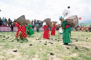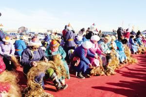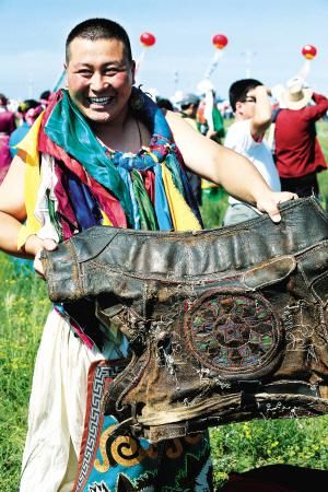 当然,后来那达慕增加了许多新项目,比如赛骆驼、提水、缝蒙古袍扣子、捡牛粪、打断牛骨比赛、蒙古象棋比赛、沙嘎(羊拐)比赛等。在北京举办的那达慕里,还融入了现代三大球类比赛项目,为了集体参与,增加了拔河比赛、扔沙包、服饰比赛、儿童说蒙古语比赛、儿童唱歌比赛等。