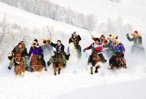 新疆维吾尔自治区喀纳斯冬季那达慕赛马。 陈岭摄