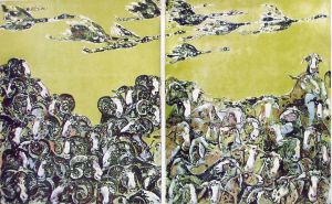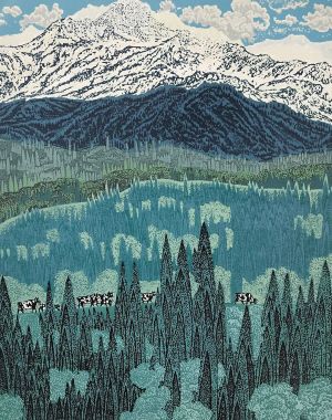 《天山脚下新牧场》吕剑利 版画 73cm×93cm 全国版画展展出作品