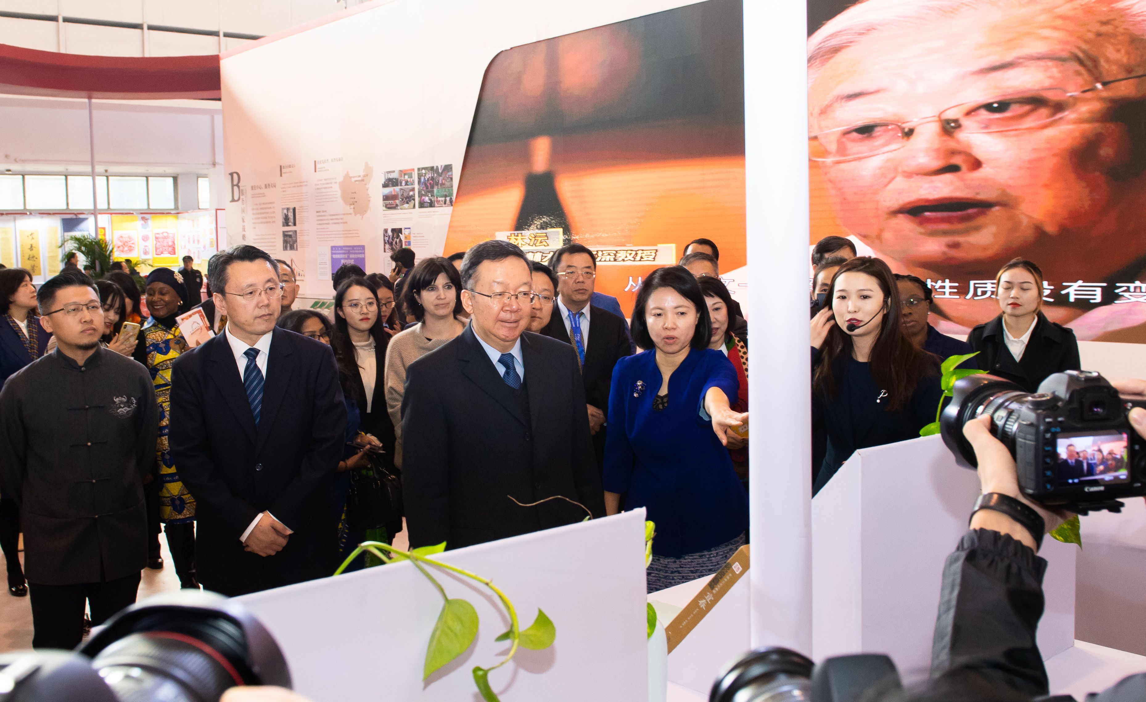 10月25日,教育部副部长、国家语委主任田学军出席第三届中国北京国际语言文化博览主论坛——“语言智能与语言多样性”国际语言文化论坛开幕式,并在开幕式后赴中国国际展览中心巡展,在现场听取了“新中国成立七十周年语言文字事业发展成就展”介绍,参观了科大讯飞、京津冀协同发展展区、粤港澳大湾区展区、广西语委展区以及语言科技、语言出版、语言创意展,在语言艺术展演区欣赏到由首都师范大学外国留学生演出的诗词吟诵,并在成就展”签名树”上签名。
