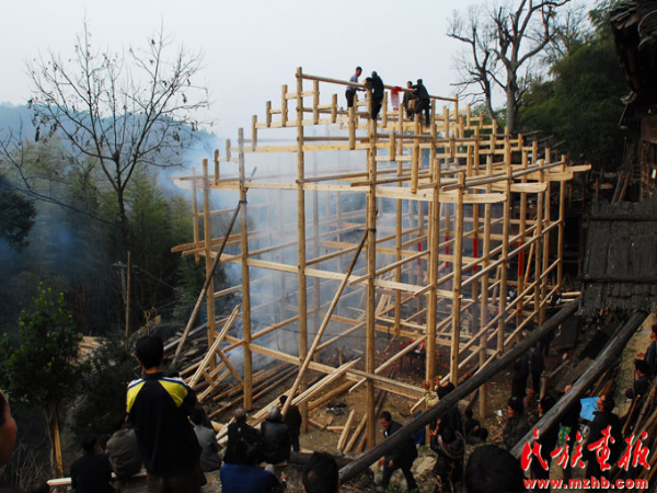 建房是人生中的一件大事,同时也有许多讲究和说法。准备建房材料时首先要选取上乘的中柱。在砍伐中柱时需准备香烛、纸钱、酒、鱼、糯米饭到树下祭奠,主人先砍几斧,再由其他亲友砍伐。备好的材料经晒干、推刨后由木匠发墨。发墨时主人在木柱一端执线,木匠在柱上拉直用力一弹,墨线笔直均匀,则表示吉利,否则还要重新发墨。立房是家中的一件大事。一般立房架和上梁同日进行,届时族人都会来帮忙,他们齐心协力把新房立起来,来参加立房架仪式的亲戚朋友都会带礼品来庆贺。立大门时要杀一只公鸡祭祀。待盖房、装饰等完成之后再择吉日乔迁。