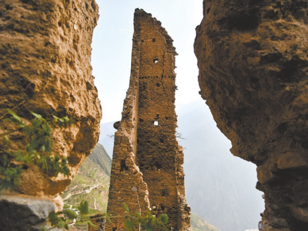 最让杨庆平感到可惜的是寨子里的碉楼。在他的印象中,寨子周边有7座碉楼,修建得非常坚固,上面有观察孔和射击孔,通过木梯可以登上二三十米高的碉楼云台,登高远眺,大寨内外尽收眼底。现在只剩下一座碉楼矗立在天地之间,高40多米,上面长满了杂草。