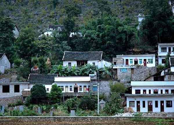 顺着蜿蜒的纳灰河向南步入纳灰村。传统的布依民居除檀条椽子是木料外,其余全用石料,石块砌墙,高可至五六米;石板盖顶,铺成齐整的菱形或随用料舒展成鳞纹。石头房屋不仅不透风雨,而且古朴美观,屋顶举重若轻,安居而不压抑。甚至家庭日常用的桌、凳、灶、碓、磨、缸等等都是石头凿成,正如布依族人的性格朴实淳厚。但现如今,村中的民居经过改造已趋向现代化。