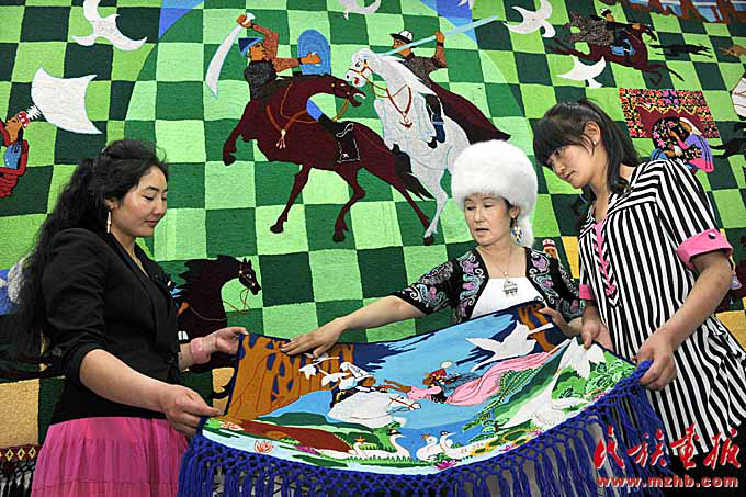 根据《玛纳斯》的内容制作的刺绣作品