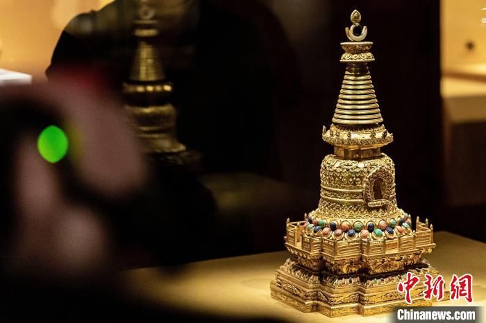 藏传佛教法器金嵌松石佛塔。 世茂海丝馆供图