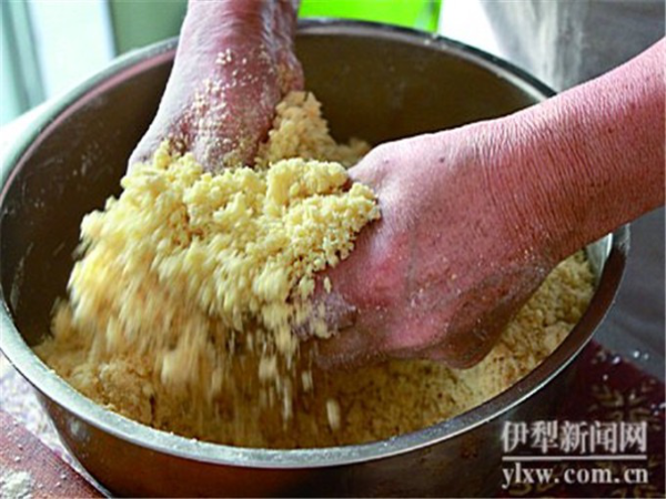 待面成为不黏手的细小颗粒,方能揉团