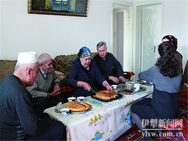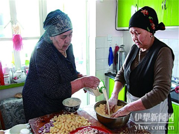 如今,她和姐姐经常互相串门,一起做拜列西。做好后,一家人围坐在一起,喝茶,吃拜列西,聊天。“一聊起来,就没个完。”买斯胡旦笑说。采访当日,她即把姐姐邀来,跟她一起做塔塔尔族的这种传统食物。