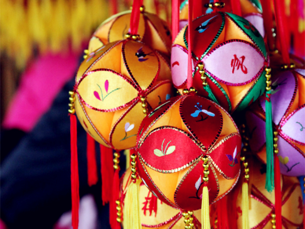 绣球是广西壮家人之定情物和吉祥物,是广西极具特色的旅游工艺品之一,原为壮族青年男女之间的爱情信物。广西绣球多以红、黄、绿三色做底及面料。绣球大多为12瓣,每瓣皆绣上各式吉祥物,如梅、兰、菊、竹等花卉图案或春燕、龙、凤等。