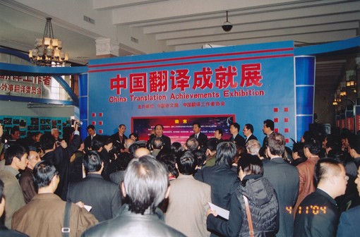 2004年11月,首届中国翻译成就展(图片来自中国民族翻译网)