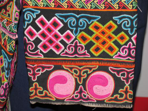 土族的刺绣堪称一绝,是我国少数民族刺绣艺术中的一朵奇葩。土族刺绣所用的布料有丝绸、斜纹布、条绒布、自制手纺棉粗布、绒毛布等,为衬托色彩绚丽的线绣图案,布料颜色以黑、红、蓝三色为主。绣线有棉线、丝线、铜丝线和金银捻线等。常用的绣法有平绣、盘绣、锁绣、切针绣、剪贴绣等。土族的刺绣品种多样,构图饱满,色彩艳丽,多用在腰带、衣领、筒袖、鞋面、烟袋等衣物和装饰品上。互助丹麻一带的土族男青年胸前大都有块四寸方连续图案,叫“富贵不断头”。土族女子到七八岁就开始跟着母亲、姐姐等学习刺绣艺术,等到了十七八岁就练就出一手好针线活了。到了节庆集会的时候,土族妇女会拿出自己的刺绣精品,展示自己的刺绣艺术。未婚姑娘非常珍爱自己的刺绣品,如果有哪位小伙得到了姑娘的刺绣品,就相当于得到了她的芳心(刘军供图)。