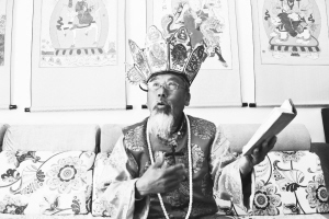 “东巴,在纳西语里意为活佛或智者。”在玉龙纳西族自治县图书馆,李瑞山一边讲解,一边向笔者展示馆藏文物,这其中包括占卜纸牌画、祭祀法杖和东巴经等。引起笔者注意的是一幅形似唐卡的卷轴画,画中的主人公竟是藏族诗人仓央嘉措。“用东巴文所写的《卓伯所》一书里,记载了纳西族与藏族、白族先民之间同宗共祖的兄弟关系,这点与木氏宗谱碑上所刻是一致的。所以,我们有关于藏族的记载并不奇怪,民族交融自古就有。”