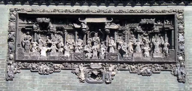 广东砖雕按技法分浅浮雕、高浮雕和透雕,按规模分组合砖雕(先单个注模,然后组合成一个完整的图案)和单块砖雕。组合砖雕一般用于墙头、柱头、照壁等大面积的装饰,大者需数百块砖雕组成。单块砖雕则常镶嵌于神龛边框或相饰、座饰等处。