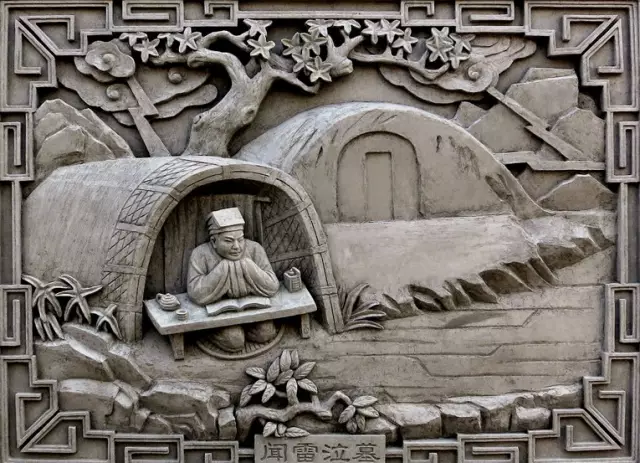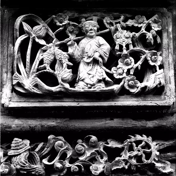 砖雕指在青砖上雕出山水、花卉、人物等图案,是古建筑雕刻中很重要的一种艺术形式。