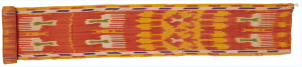艾德莱斯绸收集于新疆库尔勒地区,大面积的红色之中,点缀着象征维吾尔族生存环境的黄色,以及伊斯兰教崇尚的绿色和象征着天空的蓝色。木梳纹、石榴纹、龛座纹等纹样呈条状规则排列,多种色彩拼合出强烈的视觉效果,洋溢着跳荡激昂的韵律和热情似火的西域风情。