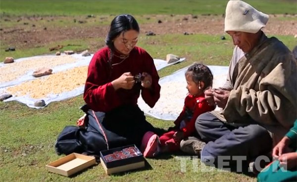 牧民品尝藏糖