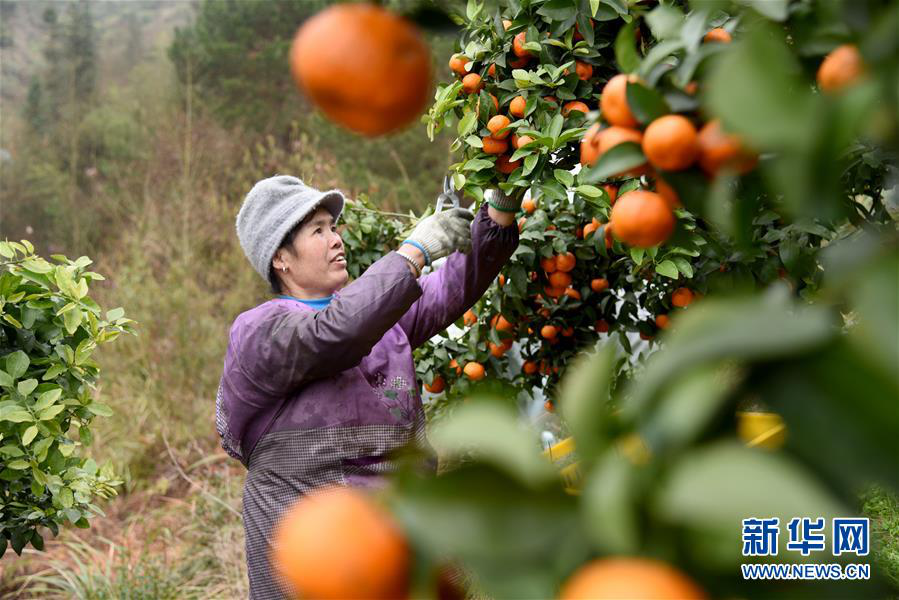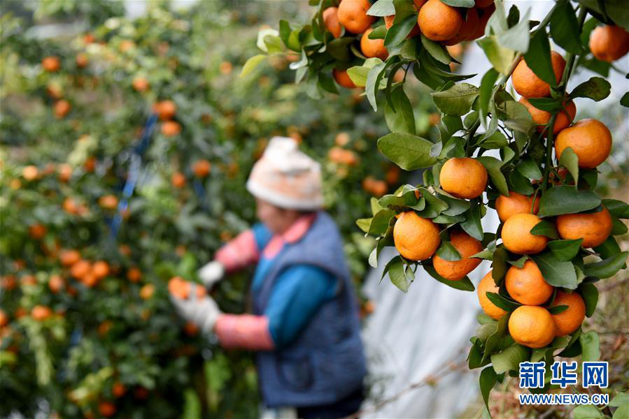 3月2日,在贵州榕江县忠诚镇王岭村砂糖橘种植基地,果农在采摘砂糖橘。