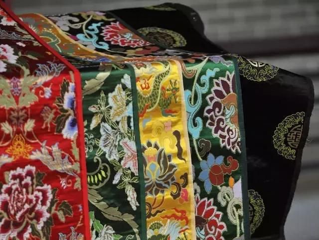 其次,它采用了双经轴织造,其中一组较为纤细的经线(称接结经或面经),用来接结正反面长浮的纬线,使织物花纹更为丰满肥亮,质地较经锦和纬锦更轻薄,更适于日常的服饰和书画的装裱。