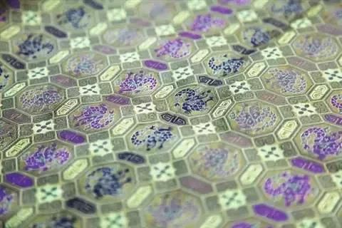 菱格四合如意纹锦根据民间收藏家手中的传世品复制,通过分析测试原作的花纹色彩、丝线材料、织物结构及加工工艺,并采用手工彩抛换道,使整匹面料的色彩千变万化。