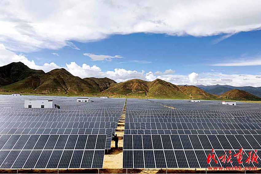 17个省市、60多个中央和国家机关、17家中央企业,先后选派8批近7500名援藏干部进藏工作,为西藏改革发展稳定作出了重要贡献。图为山东省援建的日喀则市光伏电站