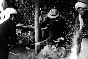 整个户撒坝子好比一座手工业加工厂,各个寨子就是车间,各以一种产品闻名。如来福寨的黑长刀和花钢刀、芒东寨的腰刀、新寨的背刀、腊姐寨的锯齿镰刀,芒派寨的刀鞘等。他们打腰刀、背刀、花钢刀、黑长刀、藏刀、蒙古刀、彝族刀、砍柴刀……只要购买者画出图样,材料许可,都能打出来。