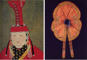 【图为察必皇后(罟罟冠)与元代金丝(纳石失)披肩,编者搜集】