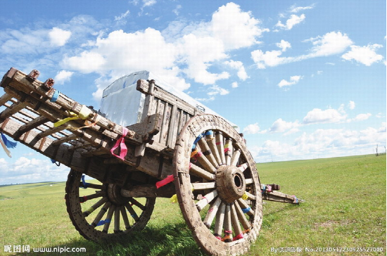 蒙古族牧民常用的一种木制大轮车。多用桦木或柳木制做。车轮高约1米,车身重约百斤,可载重300—450公斤,日行约30余公里。每车用一头牛来拉,一人可驾驭数辆,适于在草原、沙漠、雪地等行走。亦可将数十辆勒勒车首尾相接形成近百米长的车队,十分壮观,也形成了草原上特有的风情。现在已多被胶皮铁轮的轴承车所替代。另外还有一种“蒙古轿车”,是一种在勒勒车基础上经过改造专门乘人的车。其与勒勒车不同之处在于车体上有用柳条子弯曲后扎成的车棚,棚子的外面用毛毡包围,形成一个既挡阳光,又挡风雨,防晒御寒的帐篷。