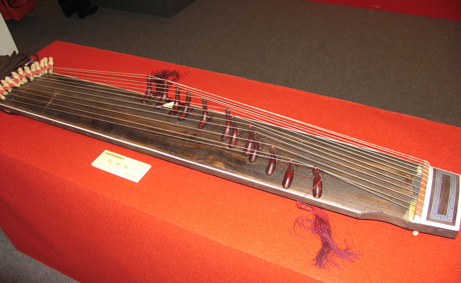 伽倻琴:朝鲜民族传统弦乐器之首,是民族色彩很浓的弹拨乐器。它的形状近似于中国民乐器古筝。伽倻琴由共鸣箱、琴弦、琴码三部分组成。共鸣箱长150厘米、宽25厘米、中间厚5厘米。质料分别用梧桐树板和桦木板制作。琴线用蚕丝制作,共13根弦,琴弦的两头各固定在琴头和琴尾,在琴头有弦枕。13根琴弦用码子做支柱,琴头可以左右移动,调节音阶。伽倻琴富有表演力,是善于表达民族柔和情感的民间乐器。因此,伽倻琴弹唱是各族人民喜闻乐见的一种表演形式。