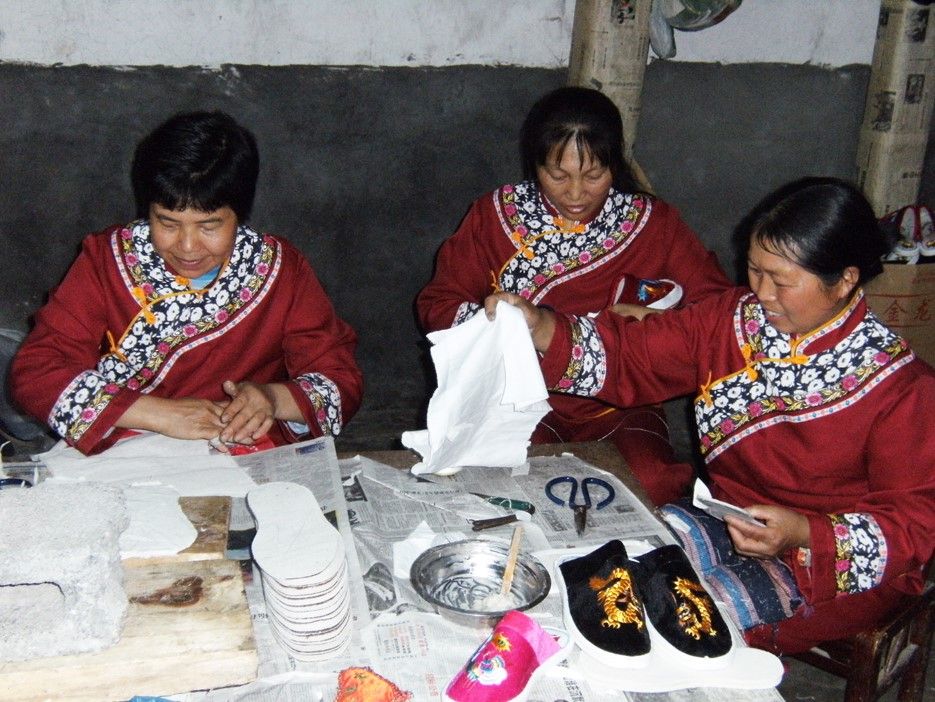 恩施土家族苗族自治州咸丰县高乐山镇官坝村土家人做绣花鞋 老铁供图