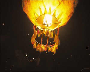 孔明灯,傣语叫“贡菲”。在傣族的传统民俗节日活动期间,傣家人都要制作和放飞孔明灯,以此祈求来年风调雨顺、五谷丰登。