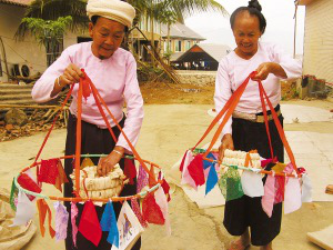关于孔明灯的制作工艺,现在的年轻人掌握的已经不多了,主要还是靠老人。景洪市嘎洒镇曼回索村60多岁的民间手工艺人岩妞就是做孔明灯很有名气的老人。岩妞制作孔明灯已经有20多年了,他做的孔明灯飞得高,还能带着鞭炮在空中啪啪炸响,增添了节日气氛。在今年4月13日傣历1374年新年节(泼水节)来临之际,岩妞忙得不亦乐乎,前来找他定做孔明灯的人络绎不绝。