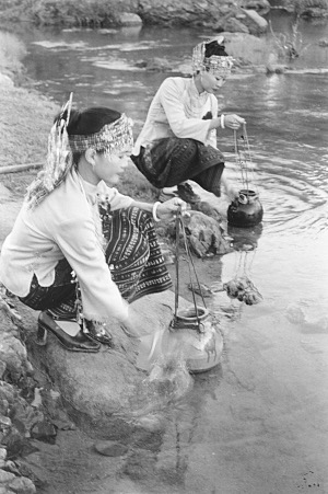 据说过去的黎家风俗是新娘挑满水缸后,就与新郎、伴娘一起到河里网鱼、摸螺。边摸螺,边唱山歌。伴娘和姐妹们会把新郎拉来嬉水,伴郎与阿哥们也不甘示弱,也向伴娘和姑娘们嬉水,你浇过来我浇过去,姑娘小伙乐陶陶。因此,保亭黎族嬉水节便是从婚俗引发出来的又一欢乐节日。