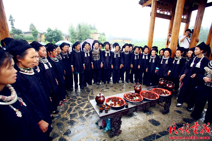 热情洋溢的水族村寨摆上拦路酒迎接客人 引自民族画报