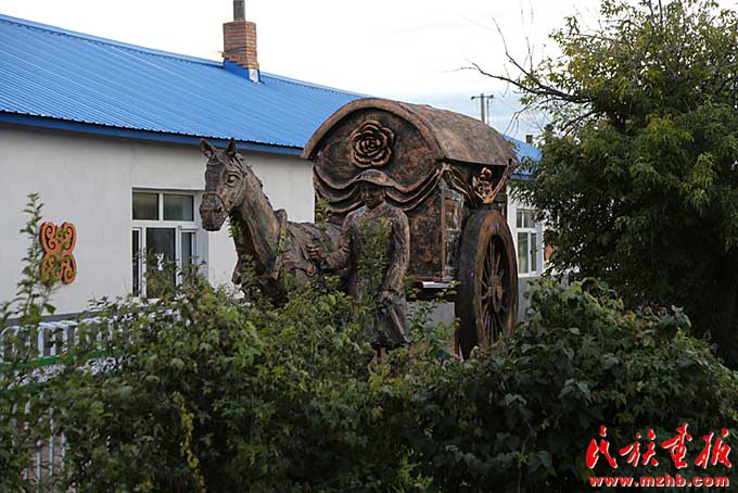 坤河村富有达斡尔族民族特色的雕塑