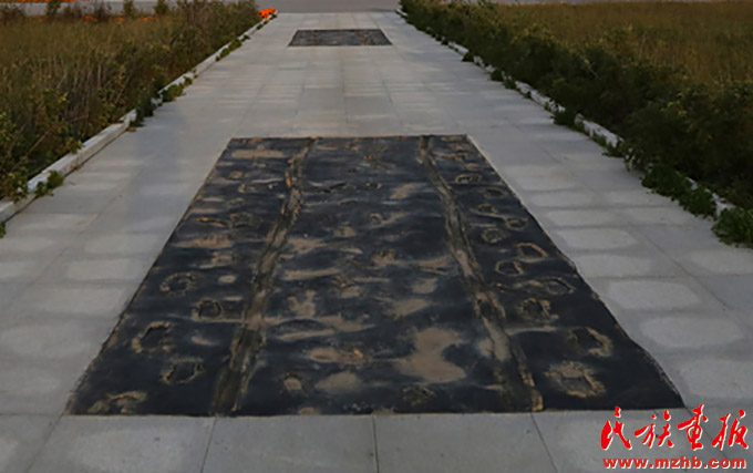 广场上的足迹反映的是达斡尔人南迁时留下的脚印、马蹄印、车辙印
