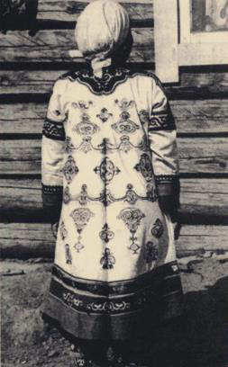 图1背部带刺绣的鱼皮长袍