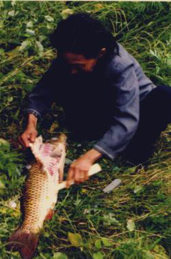 图三-图五选中剥皮的鱼 剥鱼皮 晒鱼皮