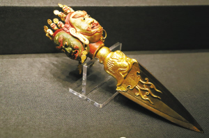 持验法器单元主要展示修持佛法、举行佛事活动和佛教仪式时所用的法器,包括金刚铃、金刚杵、嘎巴拉碗、嘎巴拉鼓、嘎巴拉念珠、喀章嘎、金刚橛、钺刀等。本部分所选法器多为藏传佛教密宗修行所用,因多存于库房,已不在原佛堂陈设,其用途和使用场所便难以知悉。故宫中有许多佛堂,大多是乾隆时期建造,其中很多是密宗佛堂,如雨花阁、梵华楼、梵宗楼、养心殿西暖阁佛堂等。