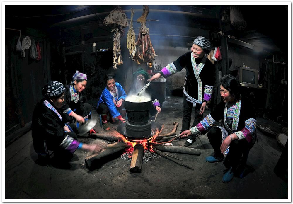人略施小计,使牛变成草食的家伙,省了口粮。人觉得这样做对不起牛,所以仍让牛住楼下老地方,一直住到现在;而且每年四月初八都蒸黑糯饭,杀鸡宰鸭过黑饭节,趁机给牛优待,开膳时抓一糰黑糯米饭供牛受用,有福同享,略带“努都弱沙”涩味的染色饭食,不但别有一番风味,还有祛湿消滞清热的效能哩,营养药效兼而有之,对人对牛的健康都有好处;还特别给牛预备一捆绿油油的嫩草,有的人家还将一把嫩草吊挂于牛栏门口供牛作节食。这事着实令人感动,肚有墨水的人给它起了个雅致的名号叫牛魂节,意为牛是有灵魂的,它有恩于人,应该三牲享祭,给牛安魂,替牛定魄,并在牛栏两边门缝和门口地面焚插凫凫香炷,牛栏门头贴一片到几、三五片巴掌般宽、七八寸的长方形的红纸,这玩艺不规则地染印颗颗金星,下垂一端呈锯齿状,微风吹来“皮皮婆婆”地拂动,像一团热烈跳动的火焰,祈求上苍保佑牛像这红红的火焰一样,祈求上苍保佑牛健壮兴旺。