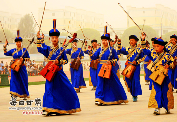 肃北蒙古族自治县乌兰牧骑于1974年成立,属大西部特殊的专业文艺团体之一。主要以搜集整理、改编和创作富含民族特色的歌舞节目为己任,以发展性传承的方式,推陈出新肃北特有的民族文化。从1980年以来,地方政府和专家学者还组织了工作队走访艺人,搜集了许多民歌、英雄史诗等,出版刊印了《肃北蒙古族赞祝词辑录》、《肃北蒙古民歌》(蒙文)等书,这些举措使雪山蒙古人的传统歌舞和民俗以文本的形式得以保存。1983年9月,肃北乌兰牧骑自编自导、独具地方特色的《响铃舞》和《马头琴演奏》,参加全国乌兰牧骑文艺汇演,受到教育部嘉奖。这也在无形中增强了肃北蒙古人的民族自豪感和民族凝聚力。