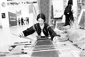 2021年5月,在第六届全国大学生艺术展演活动现场,海南师范大学学生展示黎族腰织机织锦技艺。第六届全国大学生艺术展演活动组委会供图