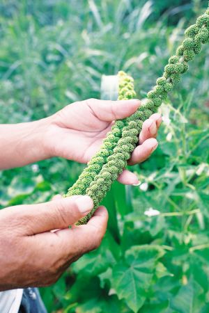 答:我刚开始生态种植的时候,很多老品种已经没有了,只有黄豆、辣椒、南瓜、黄瓜这些,其他没看见人种了。像小米、芝麻,都是后来慢慢收集来的。