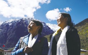 卓嘎(左)、央宗姐妹俩在一起。 新华社记者 普布扎西摄