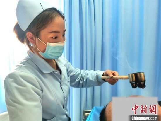 图为青海省海西州医护人员采用中藏医传统疗法治疗。(资料图)韩明媚 摄