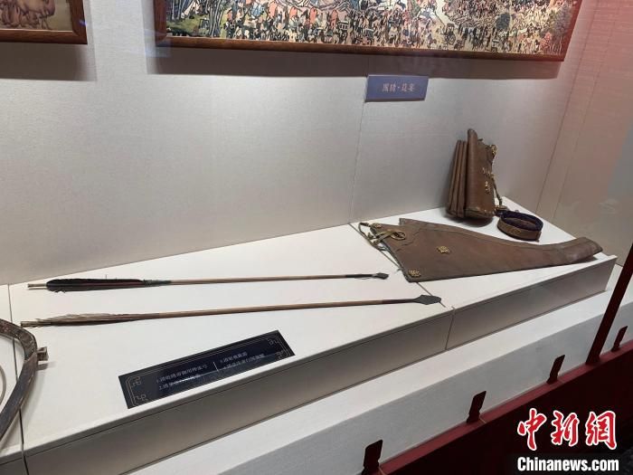 本次展览将皇帝东巡期间所做的四项主要活动内容向观众做以介绍,它们是“习武展雄风”“畅饮一家亲”“祭陵敬先祖”“百礼在皇宫”。其中,“习武展雄风”这部分展出了“清皇帝行围鈚箭”“清嘉庆帝行围櫜鞬”“清弘历御用桦皮弓”“清射鹿鈚箭”等文物。据介绍,清帝东巡出山海关到东北地区,所经路途山林茂密,大型猛兽居多,正是实地演练的最佳时机。