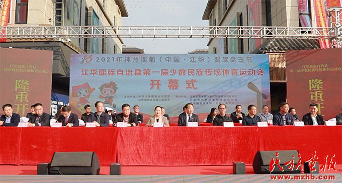 湖南省民宗委一级巡视员、省政协委员学习联络委员会副主任赵仁秀对运动会的开幕表示祝贺,希望江华瑶族自治县以此次运动会为契机,进一步振奋民族精神,增进民族感情,增强民族凝聚力和向心力,为筹备办好湖南省第十届少数民族传统体育运动会奠定良好基础;同时,江华瑶族自治县各级各部门要认真贯彻好党的十九届六中全会精神和中央民族工作会议精神,充分发挥好盘王节和少数民族传统体育运动会这些重要平台,营造好“中华民族一家亲、同心共筑中国梦”的良好氛围,为实践“三高四新”战略,建设现代化新湖南作出更大的江华贡献。