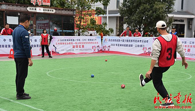 永州市委统战部副部长、市民宗局局长周建志在开幕式上致辞,运动员和裁判员代表分别进行了宣誓。据悉,本届民族运动会会期两天,共设押加、陀螺、蹴球、高脚对抗、板鞋竞速、毽球、射弩等7个竞赛项目。
