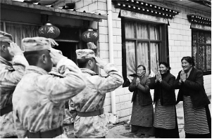 高原的冬季漫长而寒冷,突发暴雪,官兵主动帮助地方清理积雪,保障交通;遇到困难群众,基层战士慷慨解囊,坚持资助达数年之久。官兵们的真诚帮助,换来了驻地群众的真心拥戴。
